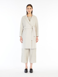 DETAILS Short coat in fine hand-sewn double-faced pure wool fabric in a wide fit that tapers slightly at the hem. This style is unlined with a small lapel collar, sleeves in a kimono style at the front and in a raglan style at the back plus side seam pockets. The matching belt highlights the figure. COMPOSITION AND CARE Fabric 100% virgin wool; - except joining thread. Do not wash; do not bleach; do not tumble dry; cool iron; professionally dry clean perchloroethylene - mild process; do not wet clean. Distributed by Max Mara S.r.l., registered office in Reggio Emilia (Italy), Via Giulia Maramotti 4, 42124 (IT)