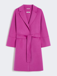 DETAILS Cocoon-fit short coat featuring a darted rear waist. Coat in hand-sewn double-faced pure wool broadcloth The comfort fit tapers slightly at the hem Small lapel collar Kimono sleeves on the front and raglan sleeves at the back Matching belt In-seam side pockets Unlined model COMPOSITION AND CARE Fabric 100% virgin wool; - except joining thread. Do not wash; do not bleach; do not tumble dry; cool iron; professionally dry clean perchloroethylene - mild process; do not wet clean. Distributed by Max Mara S.r.l., registered office in Reggio Emilia (Italy), Via Giulia Maramotti 4, 42124 (IT)