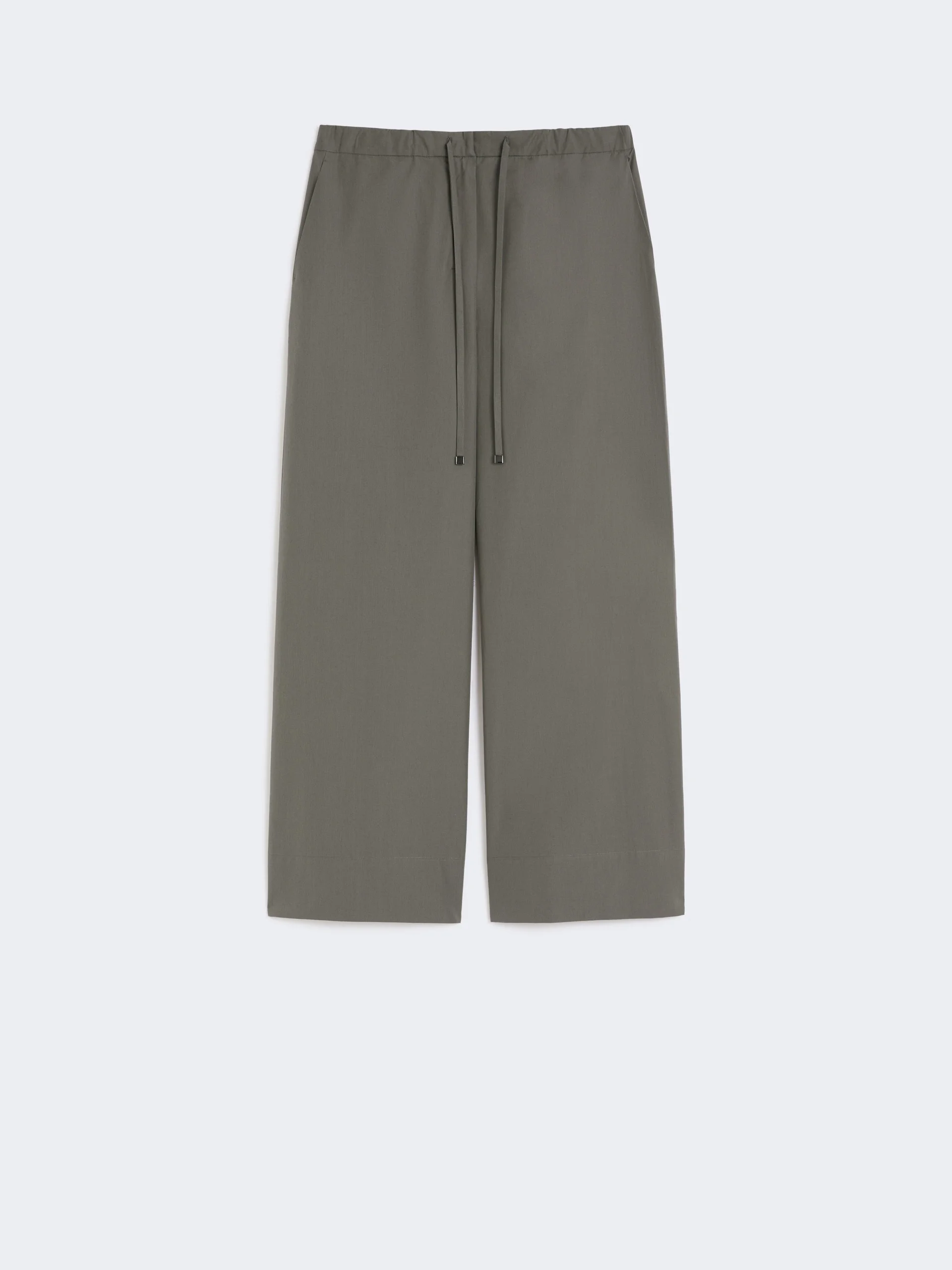 DETAILS Jogger-style trousers featuring an elasticated waistband and adjustable drawstring. - Washed pure cotton poplin trousers - Straight fit - Fly-covered zip and hook-and-bar fastening - Slant side pockets COMPOSITION AND CARE 100% cotton. Machine wash cold delicate cycle; do not bleach; do not tumble dry; line drying in the shade; cool iron; professionally dry clean perchloroethylene - mild process.; wash the garment while it is fastened.; do not iron the buttons.; protect buttons before washing.; protect the ends stoppers and/or the cord ends before washing.; contains non-textile parts of animal origin. Distributed by Max Mara S.r.l., registered office in Reggio Emilia (Italy), Via Giulia Maramotti 4, 42124 (IT)