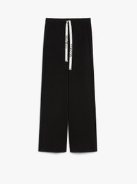DETAILS Wide-leg trousers in soft cotton jersey fabric with a technical hand. The model boasts an elasticated waistband, complete with a branded jacquard drawstring ribbon, in addition to in-seam side pockets and a welt rear pocket. COMPOSITION AND CARE 78% cotton, 22% polyester. Machine wash cold delicate cycle; do not bleach; do not tumble dry; flat drying in the shade; cool iron; professionally dry clean perchloroethylene - mild process; professional wet cleaning - very mild process.; iron with a cloth between.; using neutral detergent.; protect accessories before washing.; turn the articles inside out before washing.; to be ironed on reverse. Distributed by Max Mara S.r.l., registered office in Reggio Emilia (Italy), Via Giulia Maramotti 4, 42124 (IT)