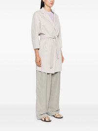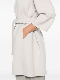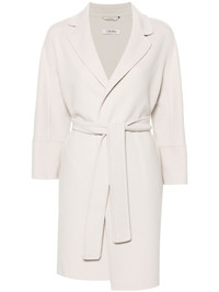 belted wool coat Highlights - Light grey - Virgin wool - Brushed finish - Notched lapels - Long raglan sleeves - Two side slit pockets - Detachable waist belt - Straight hem - Unlined - Front tie fastening Made in Italy Composition Virgin Wool 100% SIZE & FIT Model measurements Height 5 ft 11 in(1.8 m) Bust/Chest 33.07 in(84 cm) Hips 37.4 in(95 cm) Waist 25.19 in(64 cm) FittingInformation Designed to be unstructured, offering a loose fit throughout The tie fastening gives an adaptable and personalised fit Made from a midweight non-stretch fabric This piece fits true to size – take your usual size