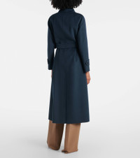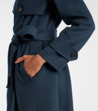 Favoring streamlined silhouettes and premium fabrics, 'S Max Mara conveys contemporary elegance. Made from soft virgin wool with a brushed finish, this coat features a classic double-breasted silhouette with a tonal belt, a rounded collar, and buttoned gun flap. Product Details - Material: 100% virgin wool - Care instructions: dry clean - Made in China - Designer color name: Dark Spring - Item color: blue - Lining: 100% silk - Closure: double-breasted - Detachable belt - Item number: P01079004 Size & Fit - True to size - Loose fit, comes with belt - Non-stretchy fabric - Height of model is 180cm-71" and wears a size DE 34