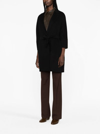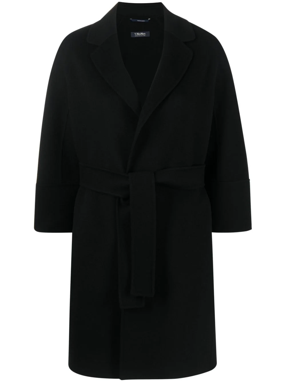 belted virgin wool coat Imagined in a versatile black hue, this 'S Max Mara coat is crafted from soft virgin wool in a classic single-breasted silhouette. This garment showcases the brand's penchant for elevated staple pieces. Highlights - Black - Virgin wool - Notched lapels - Three-quarter length sleeves - Belted waist - Two side slit pockets - Straight hem - Mid-length Imported Composition Virgin Wool 100% SIZE & FIT Model measurements Height 5 ft 11 in(1.8 m) Bust/Chest 34.25 in(87 cm) Hips 35.82 in(91 cm) Waist 24.8 in(63 cm) FittingInformation Designed to be unstructured, offering a loose fit throughout The tie fastening gives an adaptable and personalised fit Made from a midweight non-stretch fabric This piece fits true to size – take your usual size