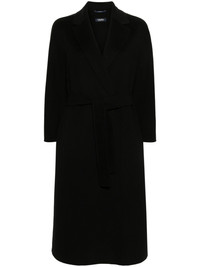 belted wool coat Highlights - Black - Virgin wool - Notched lapels - Long sleeves - Two side inset pockets - Below-knee length - Straight hem - Detachable waist belt Imported Composition Virgin Wool 100% SIZE & FIT Model measurements Height 5 ft 9 in(1.76 m) Bust/Chest 29.92 in(76 cm) Hips 33.85 in(86 cm) Waist 22.83 in(58 cm) FittingInformation Designed to be unstructured, offering a loose fit throughout The tie fastening gives an adaptable and personalised fit Made from a midweight non-stretch fabric This piece fits true to size – take your usual size Washing instructions Dry Clean Only