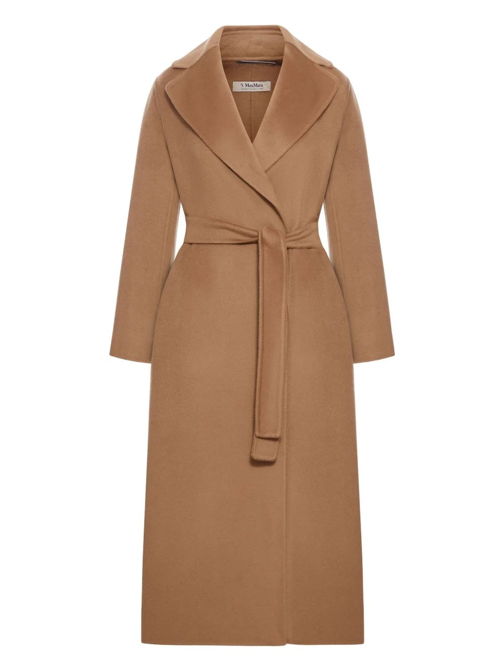 belted wool coat Highlights - Camel - Wool - Peak lapel - Belted waist - Long sleeves Made in Italy Composition Virgin Wool 100% Lining: Silk 100% Washing instructions Read Manufacturer Guidelines