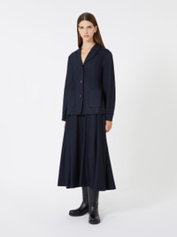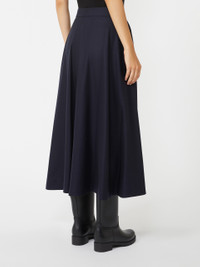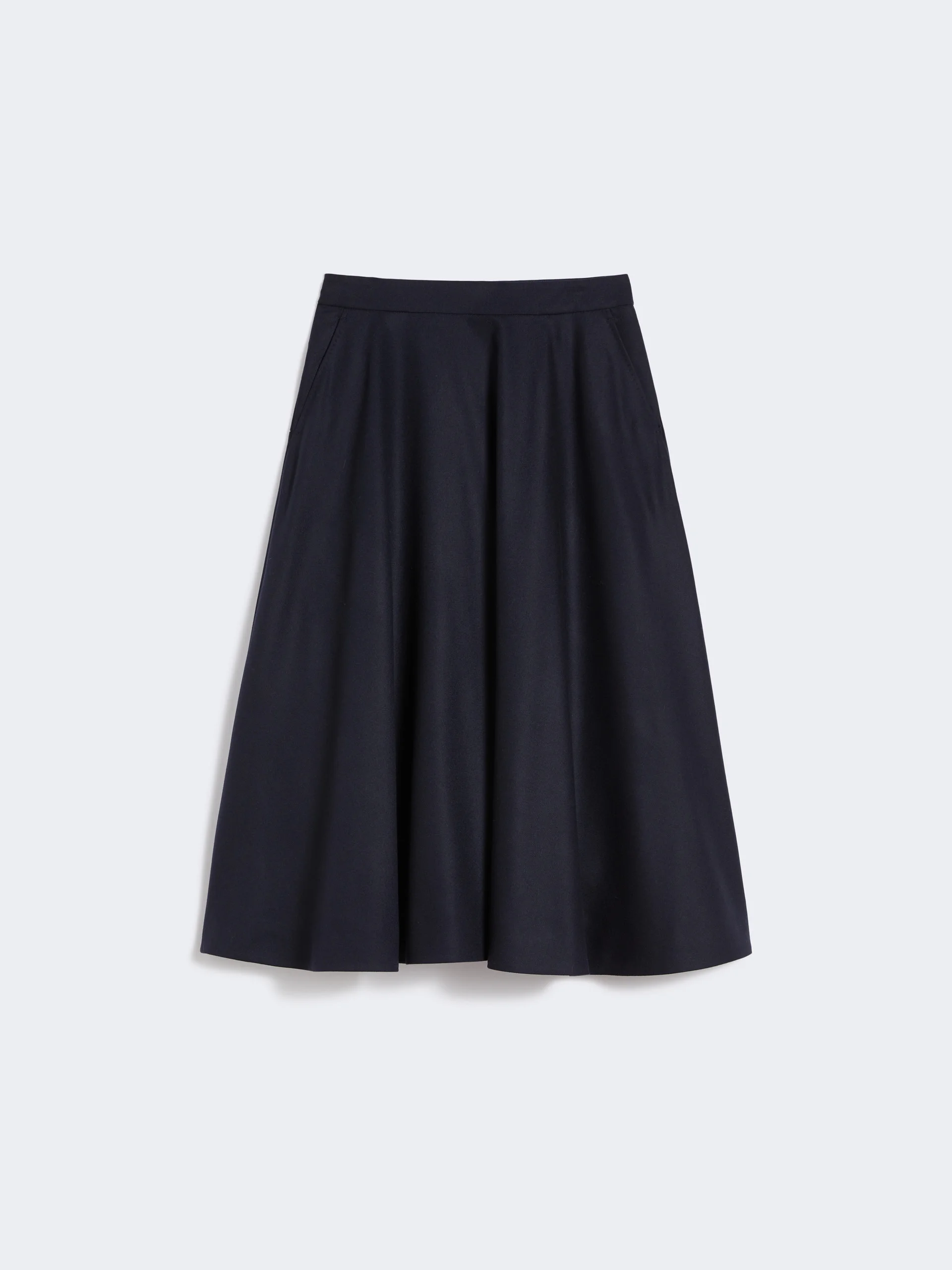 DETAILS Feminine long flared skirt. Stretch wool flannel skirt Mid-rise Concealed zip fastening at the back Slant side pockets Unlined model COMPOSITION AND CARE Fabric 98% virgin wool, 2% elastane; lining 100% cotton. Do not wash; do not bleach; do not tumble dry; cool iron; professionally dry clean perchloroethylene - mild process; do not wet clean. Distributed by Max Mara S.r.l., registered office in Reggio Emilia (Italy), Via Giulia Maramotti 4, 42124 (IT)