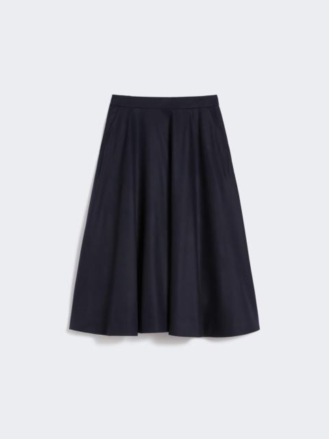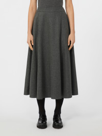 DETAILS Feminine long flared skirt. Stretch wool flannel skirt Mid-rise Concealed zip fastening at the back Slant side pockets Unlined model COMPOSITION AND CARE Fabric 98% virgin wool, 2% elastane; lining 100% cotton. Do not wash; do not bleach; do not tumble dry; cool iron; professionally dry clean perchloroethylene - mild process; do not wet clean. Distributed by Max Mara S.r.l., registered office in Reggio Emilia (Italy), Via Giulia Maramotti 4, 42124 (IT)