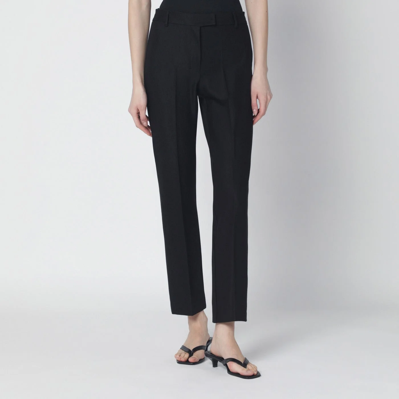 Trousers by 'S Max Mara in black cotton blend• Belt loops• Two side welt pockets• Pressed crease front and back• Front zip button and hook closure