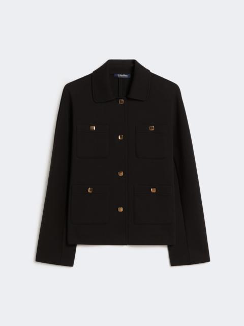 DETAILS Cropped jacket featuring four patch pockets with metallic buttons on the front. - Scuba jersey jacket - Boxy fit - Shirt collar - Long kimono sleeves - Visible gold-coloured button fastening on the front - Straight hem - Unlined model COMPOSITION AND CARE 78% cotton, 16% polyester, 6% elastane. Hand wash cold (40°c max); do not bleach; do not tumble dry; flat drying in the shade; cool iron; professionally dry clean perchloroethylene - mild process; do not wet clean.; iron with a cloth between.; using neutral detergent.; don’t rub.; turn the articles inside out before washing.; to be ironed on reverse. Distributed by Max Mara S.r.l., registered office in Reggio Emilia (Italy), Via Giulia Maramotti 4, 42124 (IT) Collection: 'S Max Mara Product code: 9911056106001 - SMMARMONIOSO
