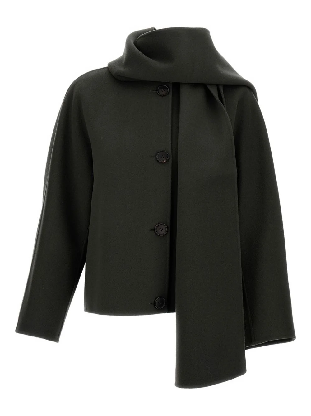 button-fastening scarf-neck jacket Highlights - Dark green - Button front fastening - Attached scarf neck - Virgin wool Imported Composition Virgin Wool 100% Washing instructions Read Manufacturer Guidelines