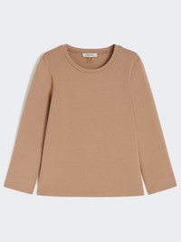 DETAILS Basic T-shirt embellished with the M Monogram logo embroidered in thread on the back of the neck. Technical cotton scuba jersey T-shirt Straight cut Crew neck Long set-in sleeves Straight hem COMPOSITION AND CARE Jersey fabric 78% cotton, 16% polyester, 6% elastane; - exclusive of embroideries. Hand wash cold (40°c max); do not bleach; do not tumble dry; flat drying in the shade; cool iron; professionally dry clean perchloroethylene - mild process; do not wet clean.; iron with a cloth between.; using neutral detergent.; don’t rub.; turn the articles inside out before washing.; to be ironed on reverse. Distributed by Max Mara S.r.l., registered office in Reggio Emilia (Italy), Via Giulia Maramotti 4, 42124 (IT)