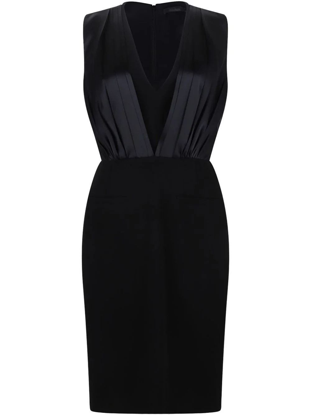 cady-texture midi dress Highlights - Black - Concealed rear zip fastening - Two side slit pockets - Pleat detailing - Sleeveless Made in Italy Composition Triacetate 64%, Polyester 36%