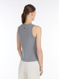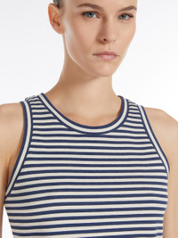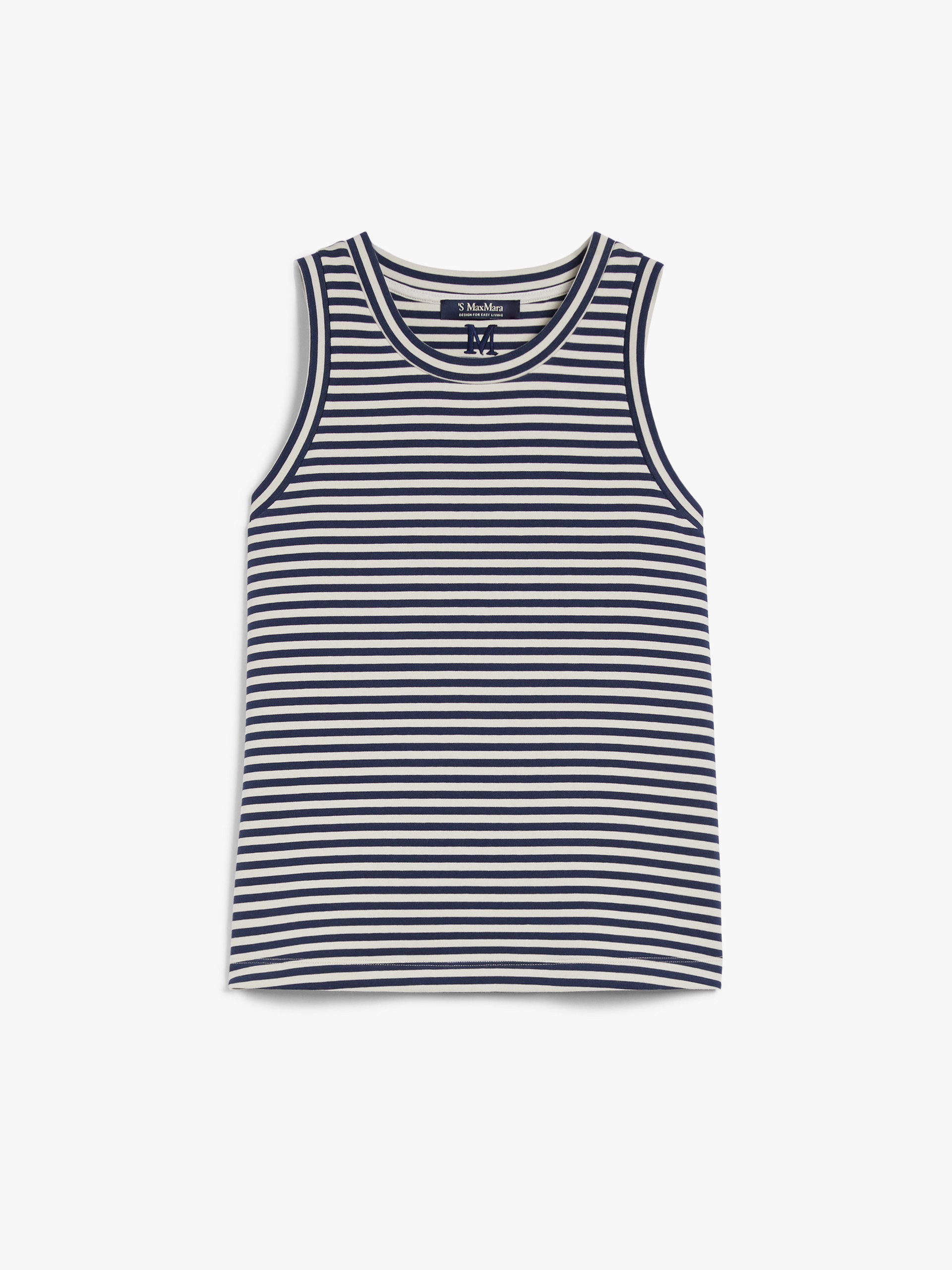 DETAILS Straight-cut sleeveless top made of a scuba jersey. Regular-fit style customised with a logo label on the back of the neck. COMPOSITION AND CARE Jersey fabric 78% cotton, 16% polyester, 6% elastane; - exclusive of embroideries. Hand wash cold; do not bleach; do not tumble dry; flat drying in the shade; cool iron; professionally dry clean perchloroethylene - mild process; do not wet clean.; iron with a cloth between.; using neutral detergent.; don’t rub.; turn the articles inside out before washing.; to be ironed on reverse. Distributed by Max Mara S.r.l., registered office in Reggio Emilia (Italy), Via Giulia Maramotti 4, 42124 (IT)