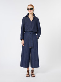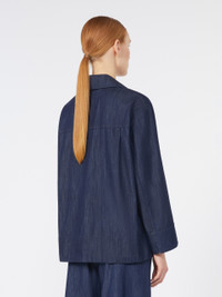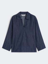 DETAILS Slightly flared shirt with wide, straight hem. - Garment-washed pure cotton denim shirt - Pointed collar with open V-neck - Long sleeves with cuffs and small side slits - Yoke seam and double darts on the back COMPOSITION AND CARE 100% cotton. Machine wash cold delicate cycle; do not bleach; do not tumble dry; line drying in the shade; cool iron; professionally dry clean perchloroethylene - mild process.; take care when wearing light-coloured clothes or accessories because, with the heat of the body, the indigo fabric , may fade and stain. be careful while sitting on light coloured surfaces, especially if wet. wash garments separately and always turned inside out. hang the garment turned inside out by avoiding to expose it to direct sunlight. avoid removing isolated stains. Distributed by Max Mara S.r.l., registered office in Reggio Emilia (Italy), Via Giulia Maramotti 4, 42124 (IT)