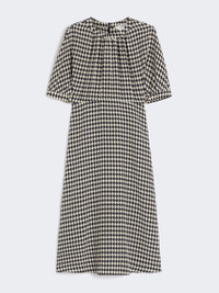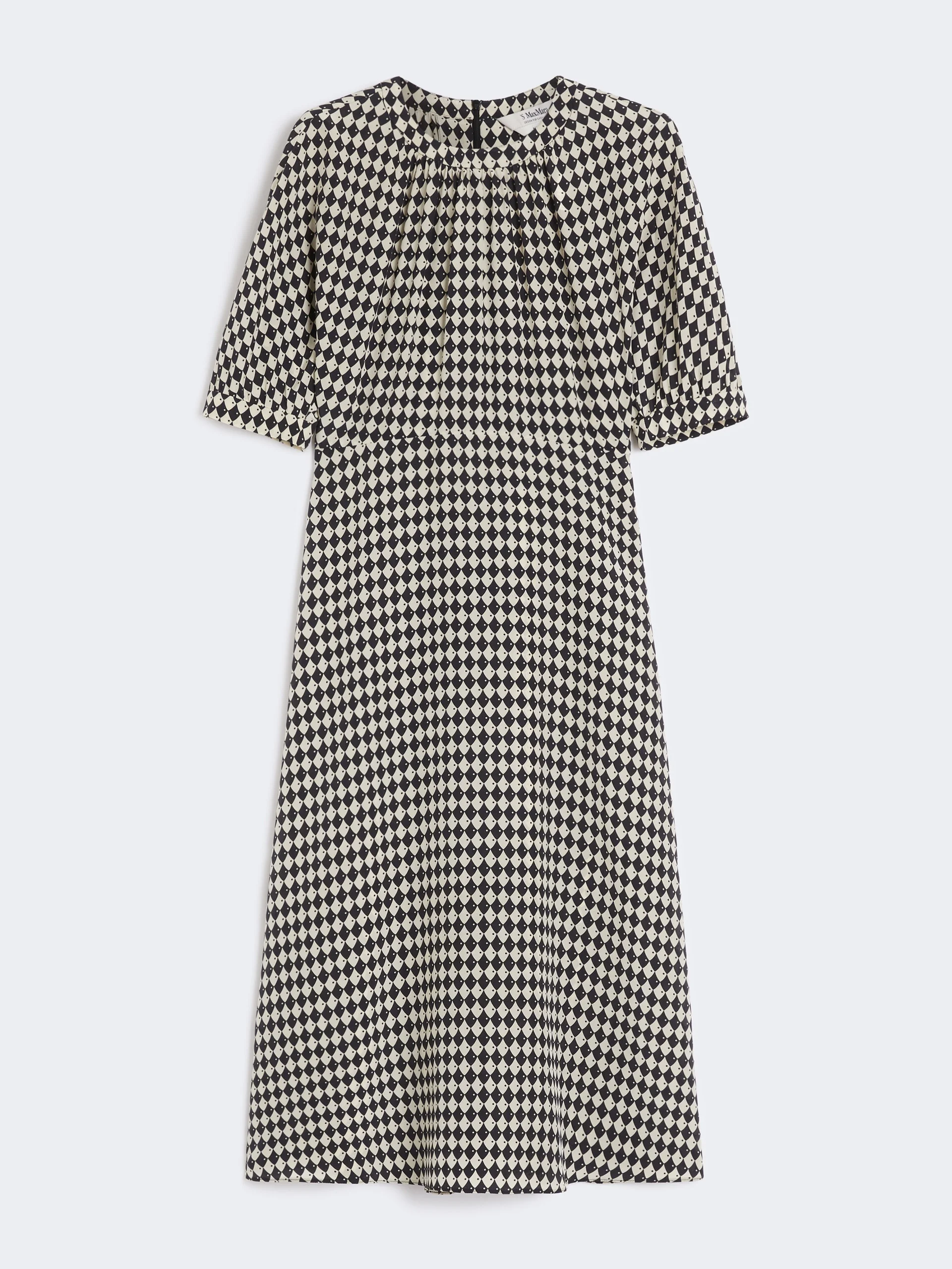 DETAILS Midi flared dress with a flowing skirt. - Printed pure silk crepe de chine dress - Slightly gathered crew neckline - Short balloon-style kimono sleeves - Concealed zip fastening at the back - Horizontal waist dart - Unlined model COMPOSITION AND CARE 100% silk. Do not wash; do not bleach; do not tumble dry; cool iron; professionally dry clean perchloroethylene - mild process; do not wet clean. Distributed by Max Mara S.r.l., registered office in Reggio Emilia (Italy), Via Giulia Maramotti 4, 42124 (IT)