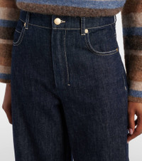 'S Max Mara conveys contemporary elegance through streamlined silhouettes and premium fabrics. The Chiara jeans are cut to a wide-leg silhouette and feature contrasting stitching and a classic zipper-and-button fastening. Product Details - Material: 93% cotton, 7% kapok - Care instructions: machine wash at 30 degrees - Made in Morocco - Color: blue - Designer color name: Blue Pulito - Item color: blue - Closure: zipper fly, button fastening - Pockets: five pockets - Belt loops - Item number: P01125839 Size & Fit - True to size - Non-stretchy fabric - Wide-leg - Mid-rise - The model seen in the picture is 178cm-5'10" and wearing a size DE 34