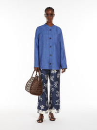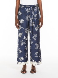 DETAILS Straight-cut, loose-fitting trousers in luxurious pure silk twill with an all-over printed motif. The garment features a contrasting band on the hem, an elasticated waist at the back and slant pockets at the sides. The matching belt accentuates the silhouette. Fastening with a wide waistband tab, zip fly and small hook. COMPOSITION AND CARE 100% silk. Do not wash; do not bleach; do not tumble dry; cool iron; professionally dry clean perchloroethylene - mild process; do not wet clean.; wash the garment while it is fastened.; contains non-textile parts of animal origin. Distributed by Max Mara S.r.l., registered office in Reggio Emilia (Italy), Via Giulia Maramotti 4, 42124 (IT)