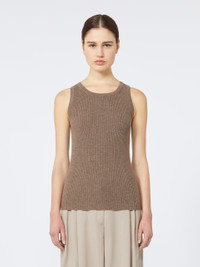 DETAILS Sleeveless top featuring a silhouette-accentuating rib-knit pattern. Wool and cashmere yarn top Straight fit Wide crew neckline Rib-knit trims Straight hem COMPOSITION AND CARE 80% wool, 20% cashmere. Hand wash cold (40°c max); do not bleach; do not tumble dry; flat drying in the shade; cool iron; professionally dry clean perchloroethylene - mild process; do not wet clean.; iron with a cloth between.; using neutral detergent.; turn the articles inside out before washing.; to be ironed on reverse. Distributed by Max Mara S.r.l., registered office in Reggio Emilia (Italy), Via Giulia Maramotti 4, 42124 (IT)
