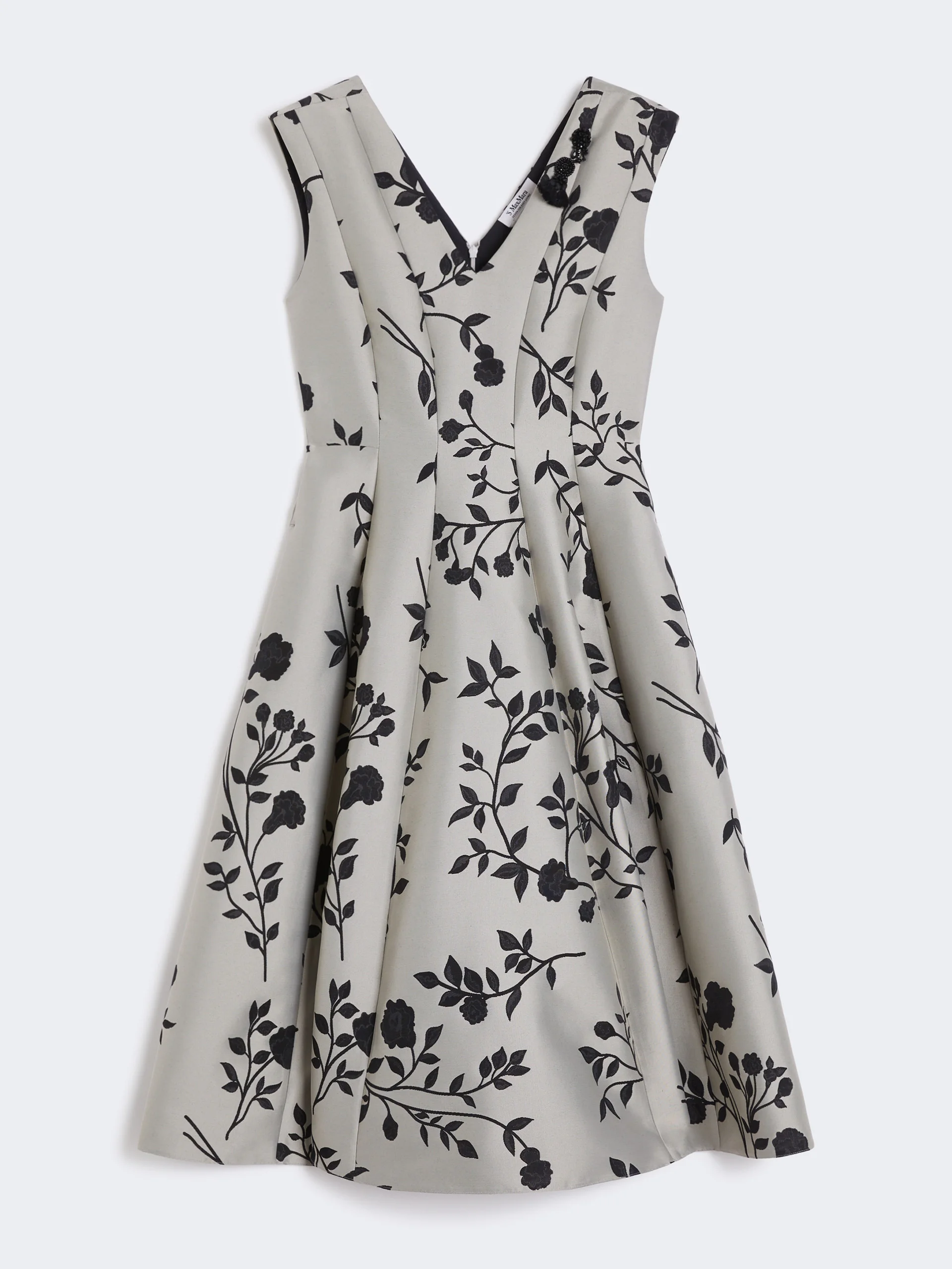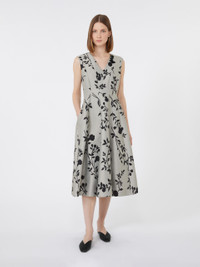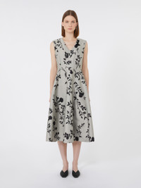 DETAILS Midi dress featuring a contoured bodice and flared skirt. Cotton-blend jacquard-design dress Fit and flare fit V-neck at front and back, with removable jewel appliques Sleeveless Back concealed zip fastening Side inset pockets Lined COMPOSITION AND CARE Fabric 72% polyester, 28% cotton; lining 100% cotton; - exclusive of decoration. Do not wash; do not bleach; do not tumble dry; cool iron; professionally dry clean perchloroethylene - mild process; do not wet clean.; remove the decorations before washing. Distributed by Max Mara S.r.l., registered office in Reggio Emilia (Italy), Via Giulia Maramotti 4, 42124 (IT)