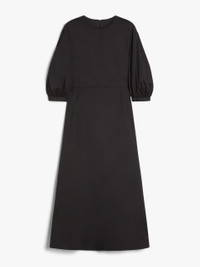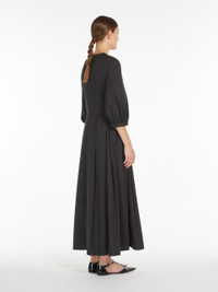 DETAILS Long princess-line dress made of stretch cotton poplin, with a round neckline and 3/4 puff sleeves. Finished with a waist seam and a slightly flared skirt with pleats. Concealed zip fastening on the back. COMPOSITION AND CARE Fabric 80% cotton, 18% polyamide, 2% elastane; lining 80% cotton, 18% polyamide, 2% elastane. Machine wash cold delicate cycle; do not bleach; do not tumble dry; line drying in the shade; cool iron; professionally dry clean perchloroethylene - mild process. Distributed by Max Mara S.r.l., registered office in Reggio Emilia (Italy), Via Giulia Maramotti 4, 42124 (IT)