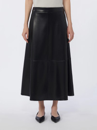 DETAILS Long full, flared skirt. - Coated jersey skirt - High waist - Concealed zip fastening at the back - Slant side pockets - Leather goods-style darts and topstitching - Unlined model COMPOSITION AND CARE Jersey fabric 100% polyester; layer polyurethanic resin. Hand wash cold (40°c max); do not bleach; do not tumble dry; flat drying in the shade; cool iron; professionally dry clean perchloroethylene - mild process; do not wet clean.; iron with a cloth between.; using neutral detergent.; don’t rub.; turn the articles inside out before washing.; to be ironed on reverse. Distributed by Max Mara S.r.l., registered office in Reggio Emilia (Italy), Via Giulia Maramotti 4, 42124 (IT) Collection: 'S Max Mara Product code: 9771016106007 - SMMNINFA