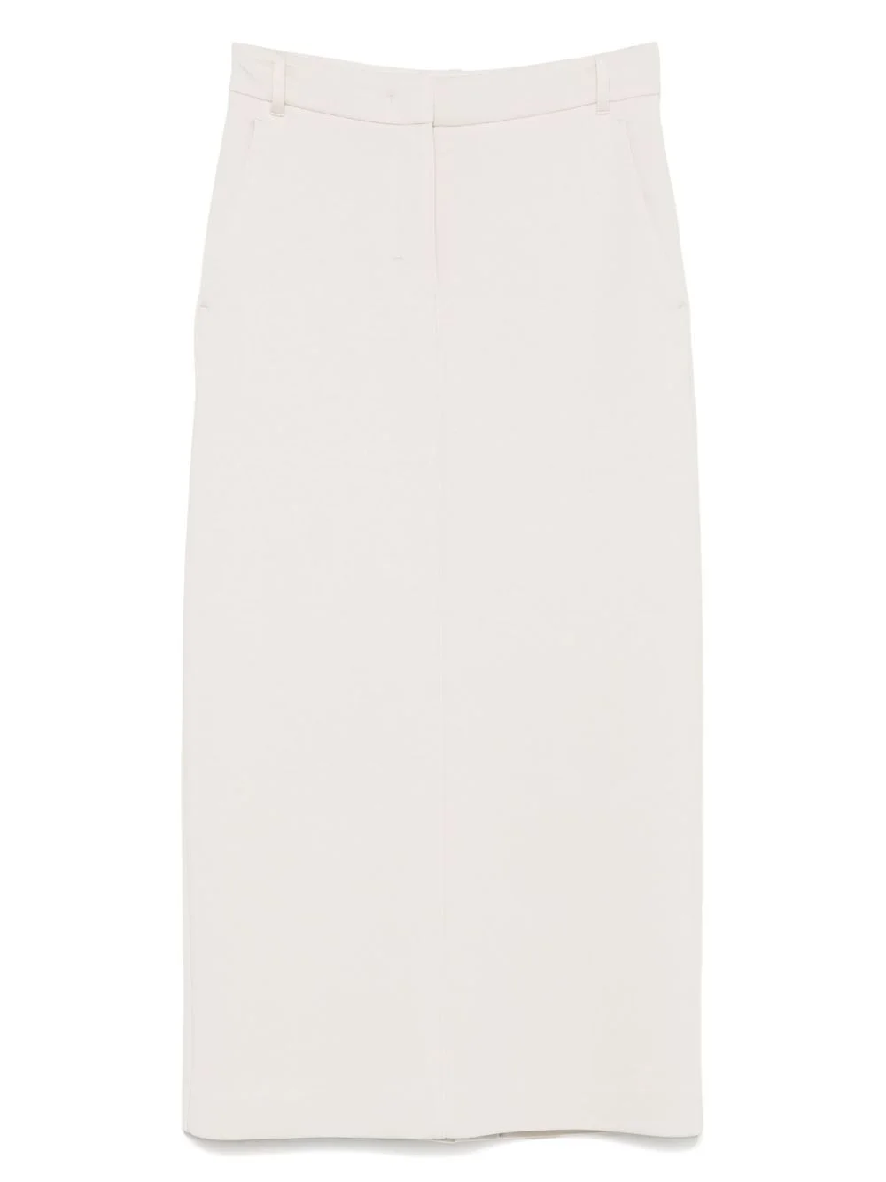 Como skirt Highlights - Light beige - Hook and zip fly fastening - Two side slash pockets - Rear welt pocket - Belt loops Made in Italy Composition Cotton 78%, Polyester 16%, Elastane 6% SIZE & FIT Model measurements Height 5 ft 9 in(1.75 m) Bust/Chest 34.64 in(88 cm) Hips 36.61 in(93 cm) Waist 26.37 in(67 cm) FittingInformation This midi-length skirt is intended to be worn just below the waist Made from a midweight stretch fabric, this piece offers elasticity and flexibility when worn Washing instructions Hand Wash