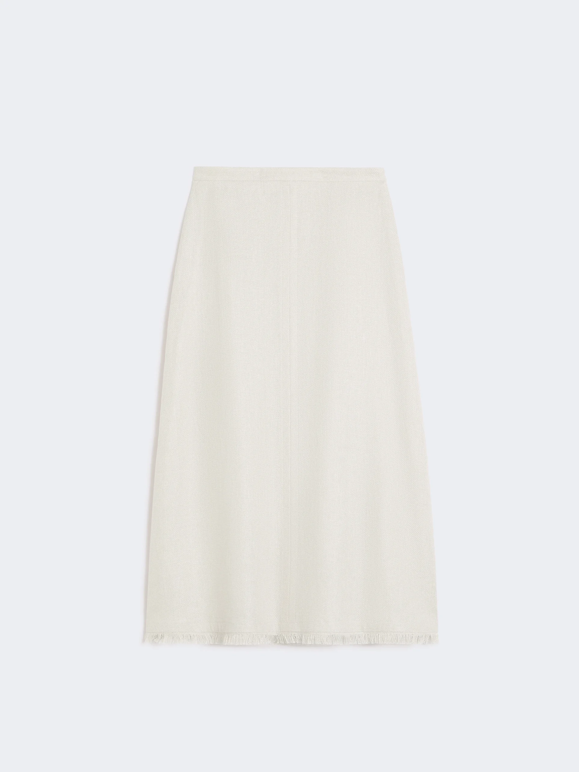 DETAILS Long A-line skirt, featuring a fringe motif at the hem. - Skirt in cotton and linen basketweave fabric - Flared fit - Mid-rise - Back zip fastening - Central dart and topstitching detail on the front and back - Lined model COMPOSITION AND CARE Fabric 86% flaxlinen, 13% cotton, 1% elastane; lining 92% cotton, 8% polyamide. Hand wash cold (40°c max); do not bleach; do not tumble dry; line drying in the shade; cool iron; professionally dry clean perchloroethylene - mild process; do not wet clean. Distributed by Max Mara S.r.l., registered office in Reggio Emilia (Italy), Via Giulia Maramotti 4, 42124 (IT) Collection: 'S Max Mara Product code: 9101026306036 - SMMFIOCCHI