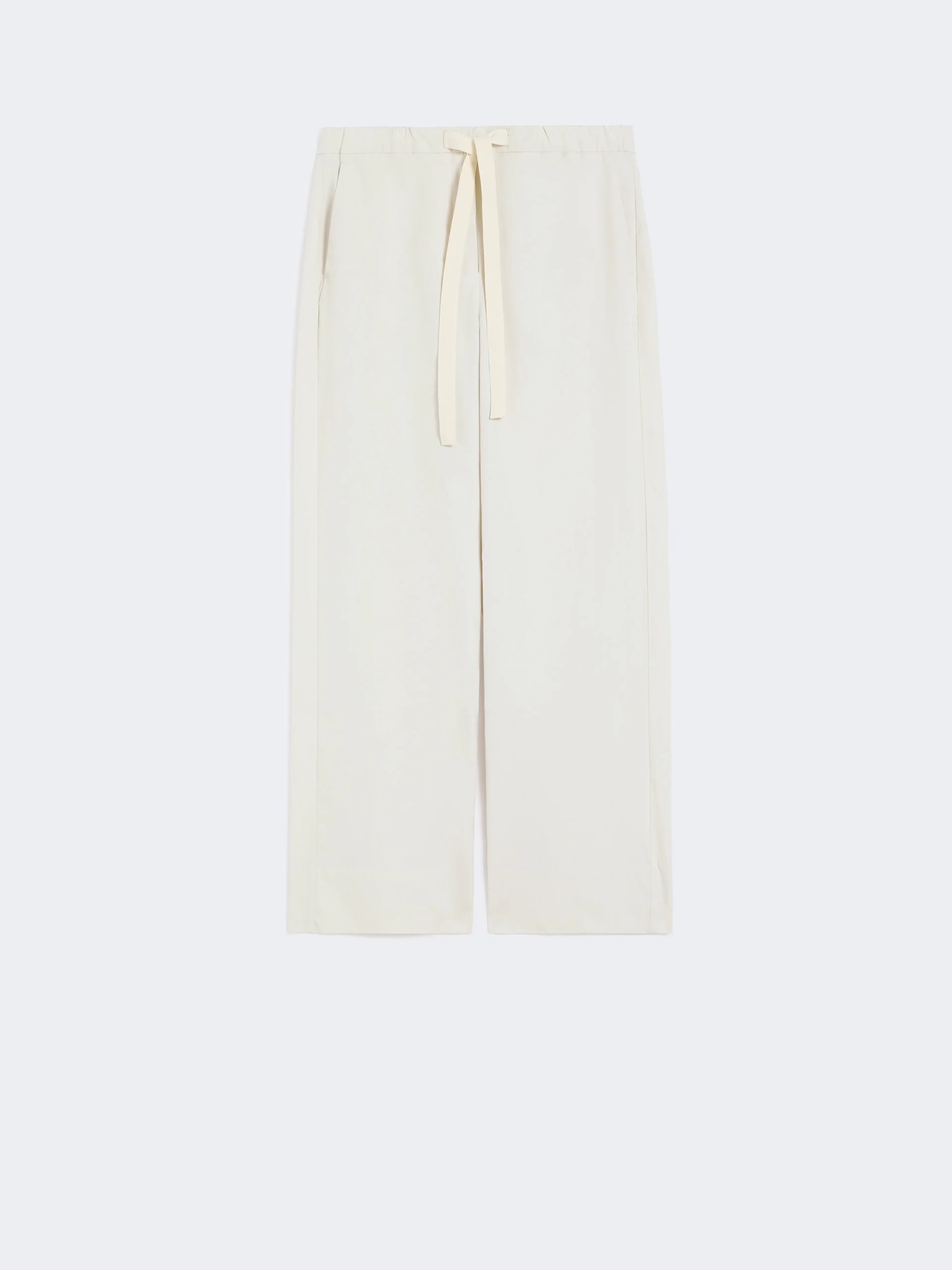 DETAILS Straight-leg trousers with a drawstring-adjustable elasticated waistband. - Pure cotton poplin trousers - Straight leg - Fly-covered zip and hook-and-bar fastening - Slant side pockets COMPOSITION AND CARE Fabric 100% cotton; - exclusive of decoration. Machine wash cold delicate cycle; do not bleach; do not tumble dry; line drying in the shade; cool iron; professionally dry clean perchloroethylene - mild process.; wash the garment while it is fastened.; do not iron the buttons.; protect buttons before washing.; protect the ends stoppers and/or the cord ends before washing.; turn the articles inside out before washing.; contains non-textile parts of animal origin. Distributed by Max Mara S.r.l., registered office in Reggio Emilia (Italy), Via Giulia Maramotti 4, 42124 (IT) Collection: 'S Max Mara Product code: 9131026306057 - SMMARGENTO