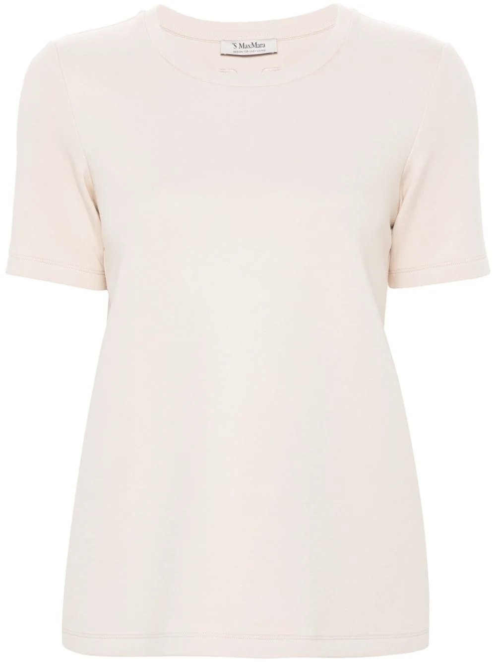 Cotton t-shirt [ SKU: 10196951632 ] Elevate your casual wardrobe with the Cotton t-shirt by S Max Mara. This classic piece features a crew neck, short sleeves, and a straight hem, complemented by an embroidered logo at the back. Ideal for effortless styling, it pairs beautifully with tailored trousers for a sophisticated look or with denim for a relaxed outing. A versatile addition that seamlessly transitions from day to night, making it a perfect choice for the modern woman seeking elegance in simplicity. Composition 78% Cotton, 16% Polyester, 06% Elastan Reference 19971023600002 Made in China
