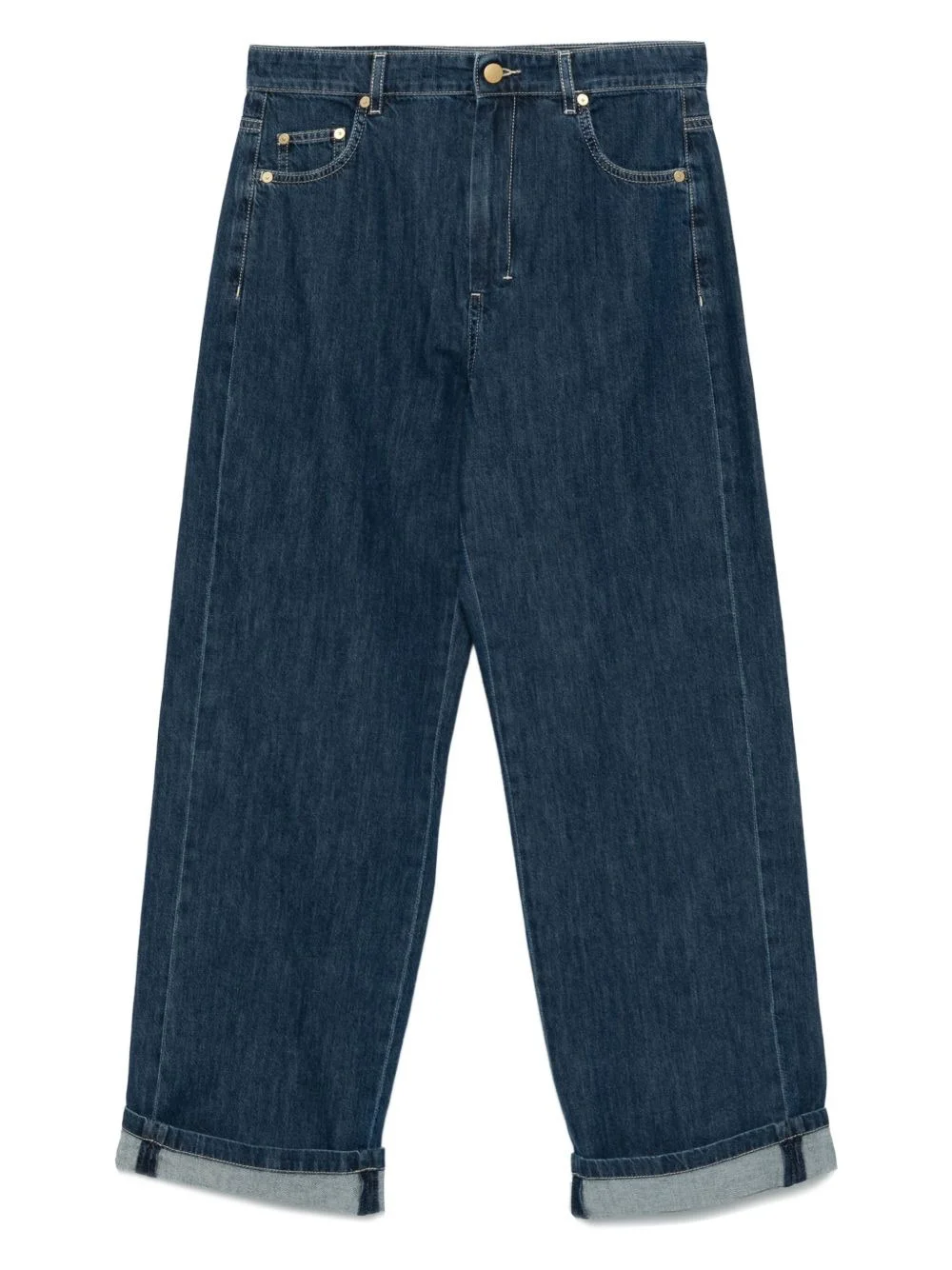 cuffed jeans Highlights - Dark blue - Button fly - Classic five pockets - Gold-tone hardware - Cuffed hem Made in Italy Composition Cotton 93%, Kapok 7% SIZE & FIT Model measurements Height 5 ft 10 in(1.78 m) Bust/Chest 33.46 in(85 cm) Hips 36.22 in(92 cm) Waist 23.22 in(59 cm) Washing instructions Machine Wash