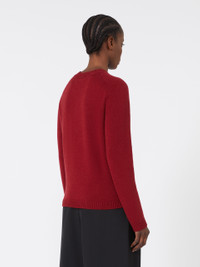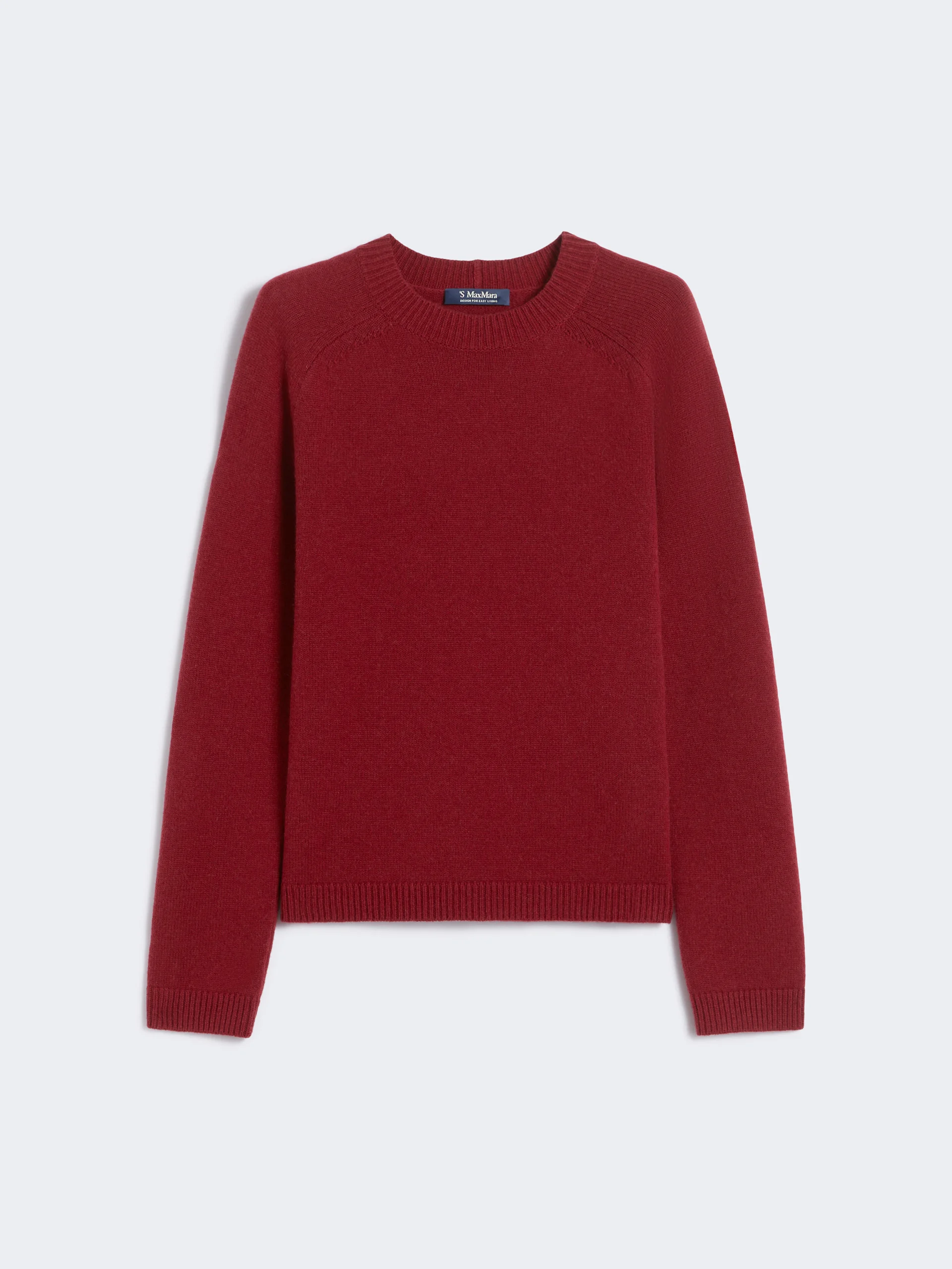 DETAILS Essential-fit crew-neck sweater. Wool and cashmere yarn sweater Fitted cut Long raglan sleeves Rib-knit trims Straight hem COMPOSITION AND CARE 80% wool, 20% cashmere. Hand wash cold (40°c max); do not bleach; do not tumble dry; flat drying in the shade; cool iron; professionally dry clean perchloroethylene - mild process; do not wet clean.; iron with a cloth between.; using neutral detergent.; turn the articles inside out before washing.; to be ironed on reverse. Distributed by Max Mara S.r.l., registered office in Reggio Emilia (Italy), Via Giulia Maramotti 4, 42124 (IT)