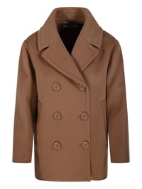 double-breasted buttoned coat Highlights - Brown - Double-breasted fastening - Notched lapel - Patch pockets Made in Italy Composition Virgin Wool 100% Washing instructions Read Manufacturer Guidelines