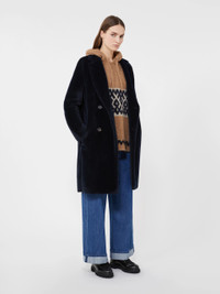 DETAILS Midi coat featuring a cocoon fit that tapers slightly at the hem. - Coat in wool and alpaca fabric with a soft and ultra-fluffy texture - Lapel collar - Set-in sleeves on the front and kimono sleeves at the back - Double-breasted visible horn button fastening - In-seam side pockets - Lined model COMPOSITION AND CARE Fabric 62% alpaca, 38% virgin wool; lining 69% acetate, 31% cupro. Do not wash; do not bleach; do not tumble dry; cool iron; professionally dry clean perchloroethylene - mild process; do not wet clean.; wash the garment while it is fastened.; do not iron the buttons.; protect buttons before washing.; turn the articles inside out before washing.; contains non-textile parts of animal origin. Distributed by Max Mara S.r.l., registered office in Reggio Emilia (Italy), Via Giulia Maramotti 4, 42124 (IT) Collection: 'S Max Mara Product code: 9016115306005 - ROSETO