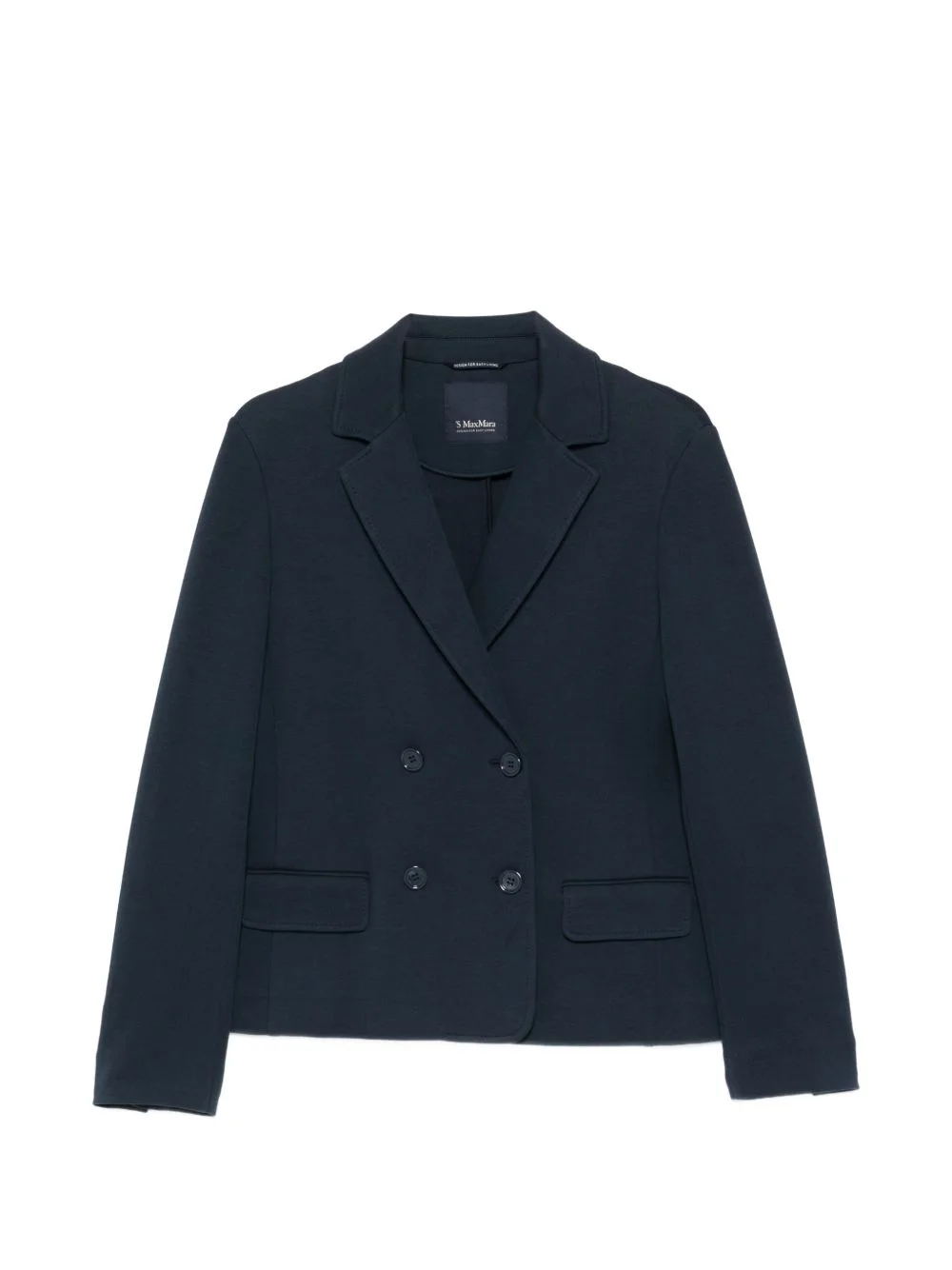 double-breasted pocketed jacket Highlights - Blue - Double-breasted - Front button fastening - Notched lapels - Front flap pockets Imported Composition Cotton 78%, Polyester 16%, Spandex/Elastane 6% Washing instructions Hand Wash