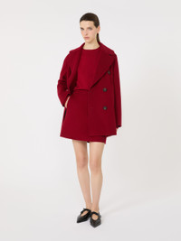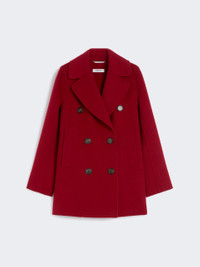 DETAILS Double-breasted hip-length pea coat with a slightly flared line. Coat made from hand-sewn, pure wool double drap Wide lapel collar Long set-in sleeves with slits at the cuff Visible button fastening Welt pockets on the sides Adjustable martingale with buttons on the back waist Partially lined COMPOSITION AND CARE Fabric 100% virgin wool; - except joining thread; lining 100% silk. Do not wash; do not bleach; do not tumble dry; cool iron; professionally dry clean perchloroethylene - mild process; do not wet clean.; wash the garment while it is fastened.; do not iron the buttons.; protect buttons before washing.; turn the articles inside out before washing.; contains non-textile parts of animal origin. Distributed by Max Mara S.r.l., registered office in Reggio Emilia (Italy), Via Giulia Maramotti 4, 42124 (IT)