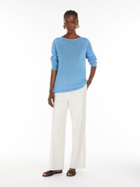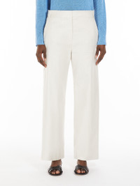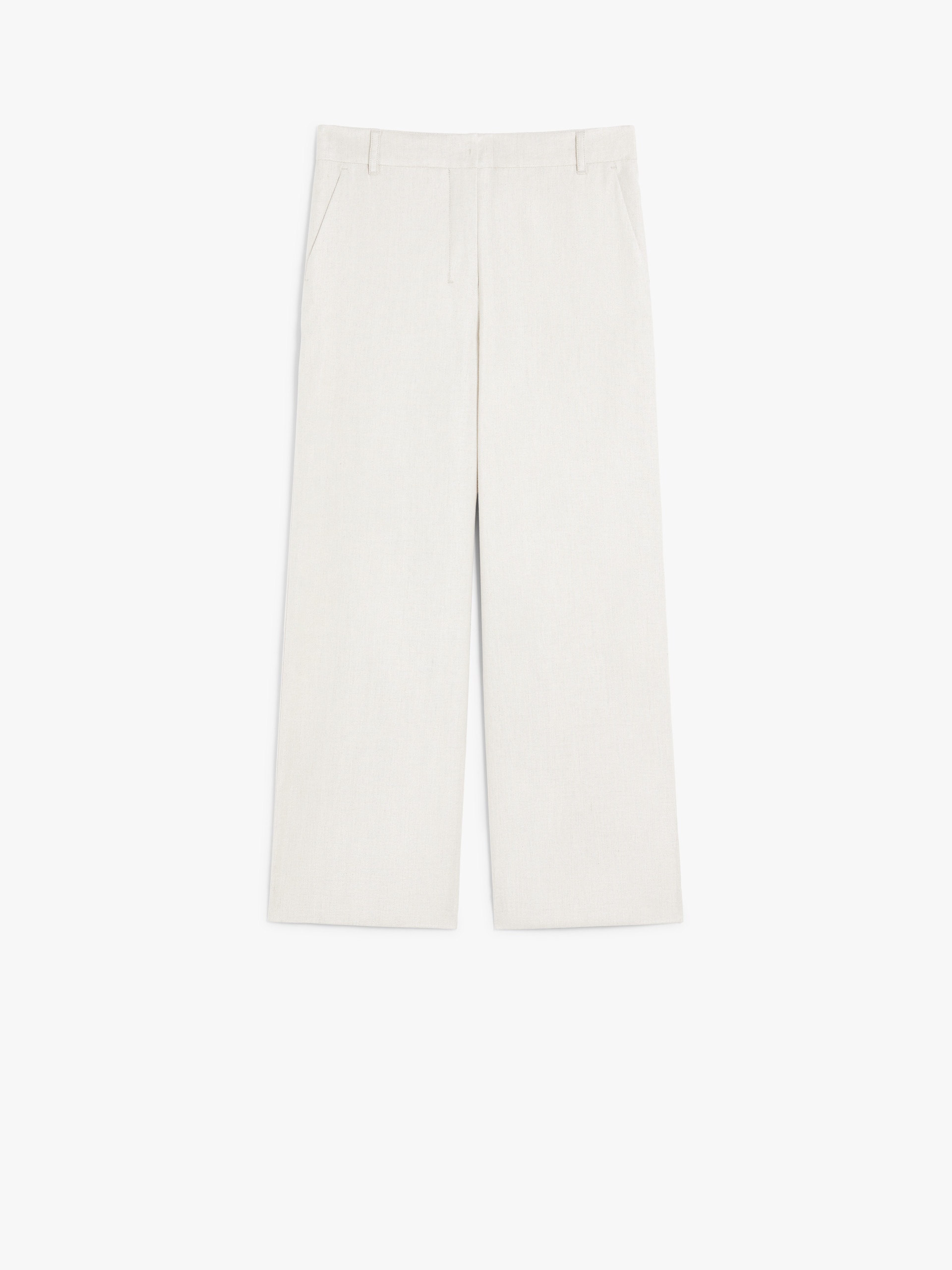 DETAILS Straight-fit trousers in stretch linen fabric. The model boasts slant side pockets, welt rear pockets and belt loop detail. High-cut waistband, and a fly-covered zip and hook-and-bar fastening. COMPOSITION AND CARE 54% flaxlinen, 43% modal, 3% elastane. Do not wash; do not bleach; do not tumble dry; cool iron; professionally dry clean perchloroethylene - mild process; do not wet clean.; wash the garment while it is fastened.; do not iron the buttons.; protect buttons before washing.; contains non-textile parts of animal origin. Distributed by Max Mara S.r.l., registered office in Reggio Emilia (Italy), Via Giulia Maramotti 4, 42124 (IT)