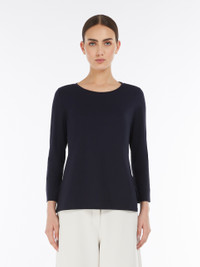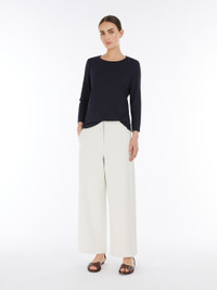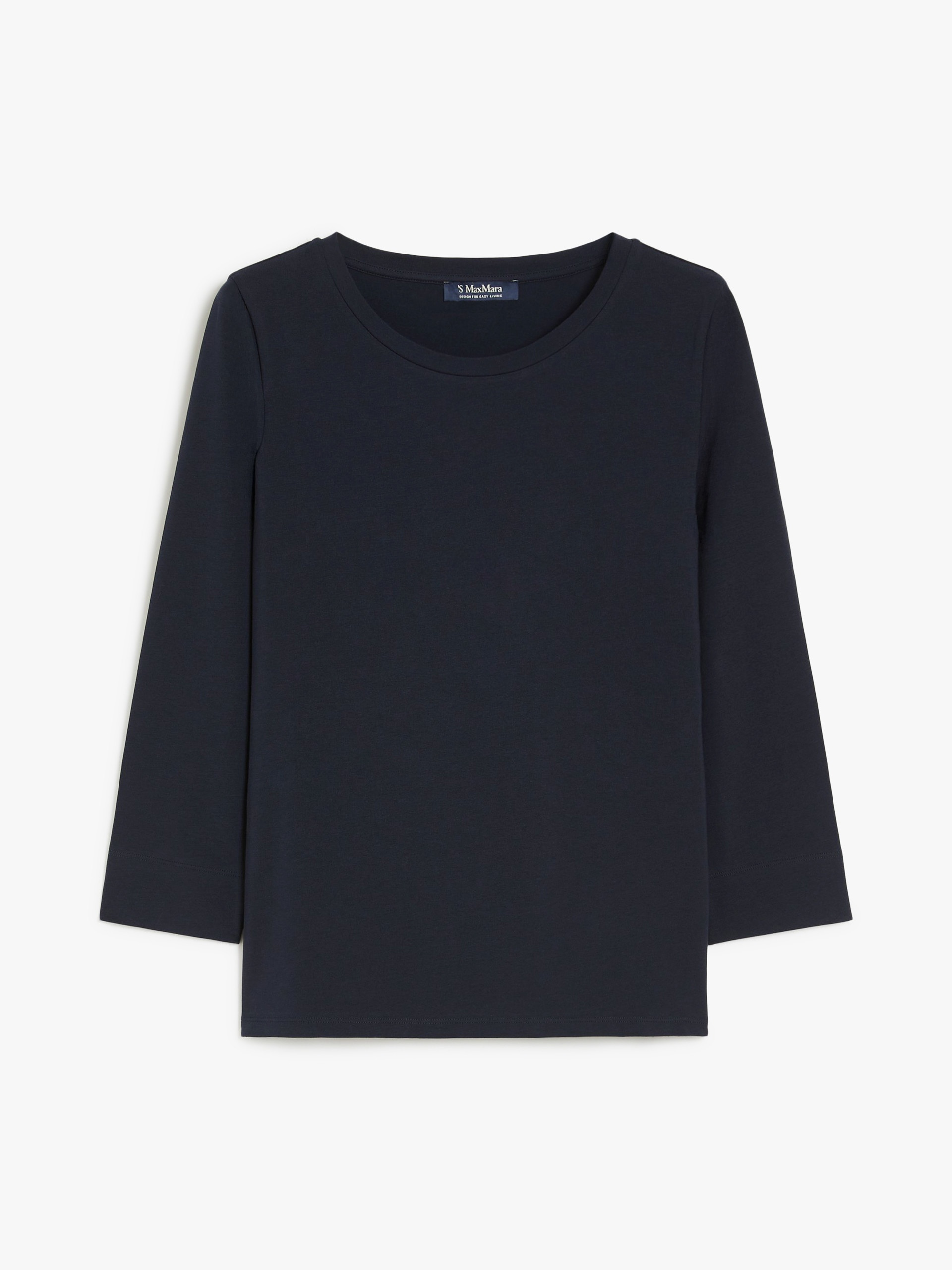 DETAILS 3/4-sleeve T-shirt in soft stretch cotton jersey fabric featuring a slight boat neckline. The back is embellished with small embroidered Max Mara logo detail. COMPOSITION AND CARE Jersey fabric 95% cotton, 5% elastane; - exclusive of embroideries. Machine wash cold delicate cycle; do not bleach; do not tumble dry; flat drying in the shade; cool iron; professionally dry clean perchloroethylene - mild process; professional wet cleaning - very mild process.; iron with a cloth between.; using neutral detergent. Distributed by Max Mara S.r.l., registered office in Reggio Emilia (Italy), Via Giulia Maramotti 4, 42124 (IT)