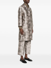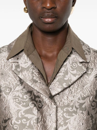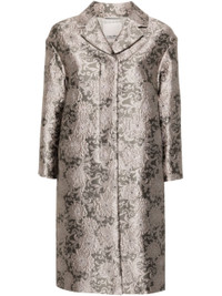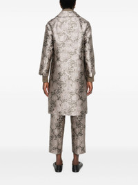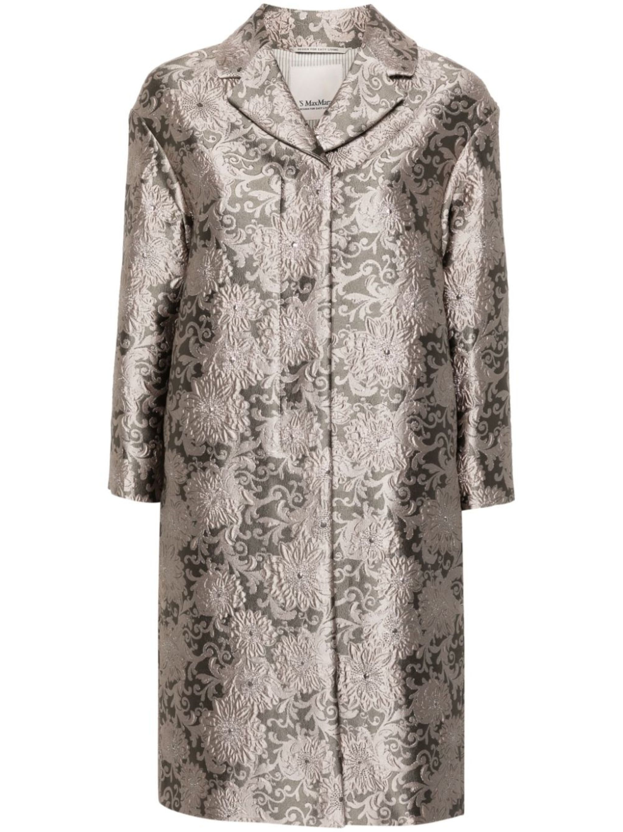 silver-tone metallic threading floral-jacquard pattern notched collar long sleeves two side inset pockets mid-length straight hem concealed front button fastening Size & Fit Model Measurements: Height: 1.76 m Bust/Chest: 82.0 cm Hips: 89.0 cm Waist: 63.0 cm Model wears size 40 Fabric and Care Designer Style ID: 2429126011000 Designer Colour: 001 GREY Composition: Outer: Polyester 80%, Metallic fibre 8%, Silk 7%, Polyamide 5%; Lining: Elastane 5%, Cotton 92%, Acetate 95%, Polyamide 8% Washing instructions: Dry Clean Only