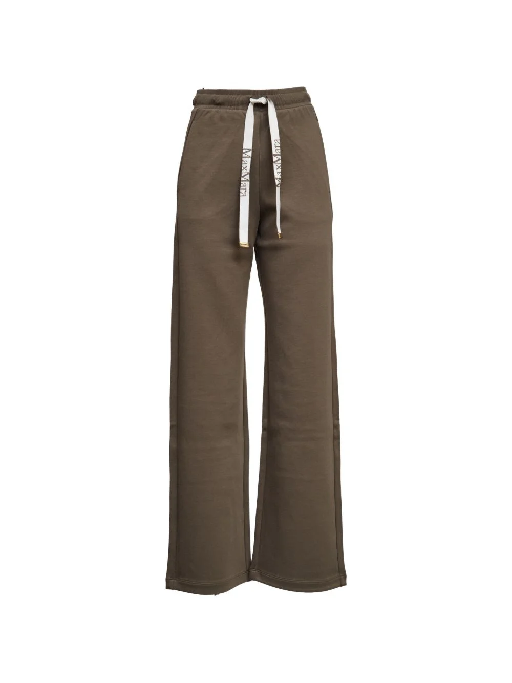 elasticated wide-leg bali trousers Highlights - Khaki green - Jacquard ribbon drawstring - Side slip pockets - Welt back pocket - Regular fit Imported Composition Cotton 78%, Polyester 22% Washing instructions Read Manufacturer Guidelines