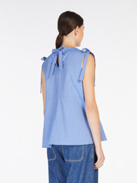 DETAILS Flared sleeveless top in pure cotton canvas featuring a horizontal waist dart, crew neckline and tie ribbon detail on the shoulders. Tie-up keyhole detail at the back. COMPOSITION AND CARE 100% cotton. Machine wash cold delicate cycle; do not bleach; do not tumble dry; line drying in the shade; cool iron; professionally dry clean perchloroethylene - mild process. Distributed by Max Mara S.r.l., registered office in Reggio Emilia (Italy), Via Giulia Maramotti 4, 42124 (IT)