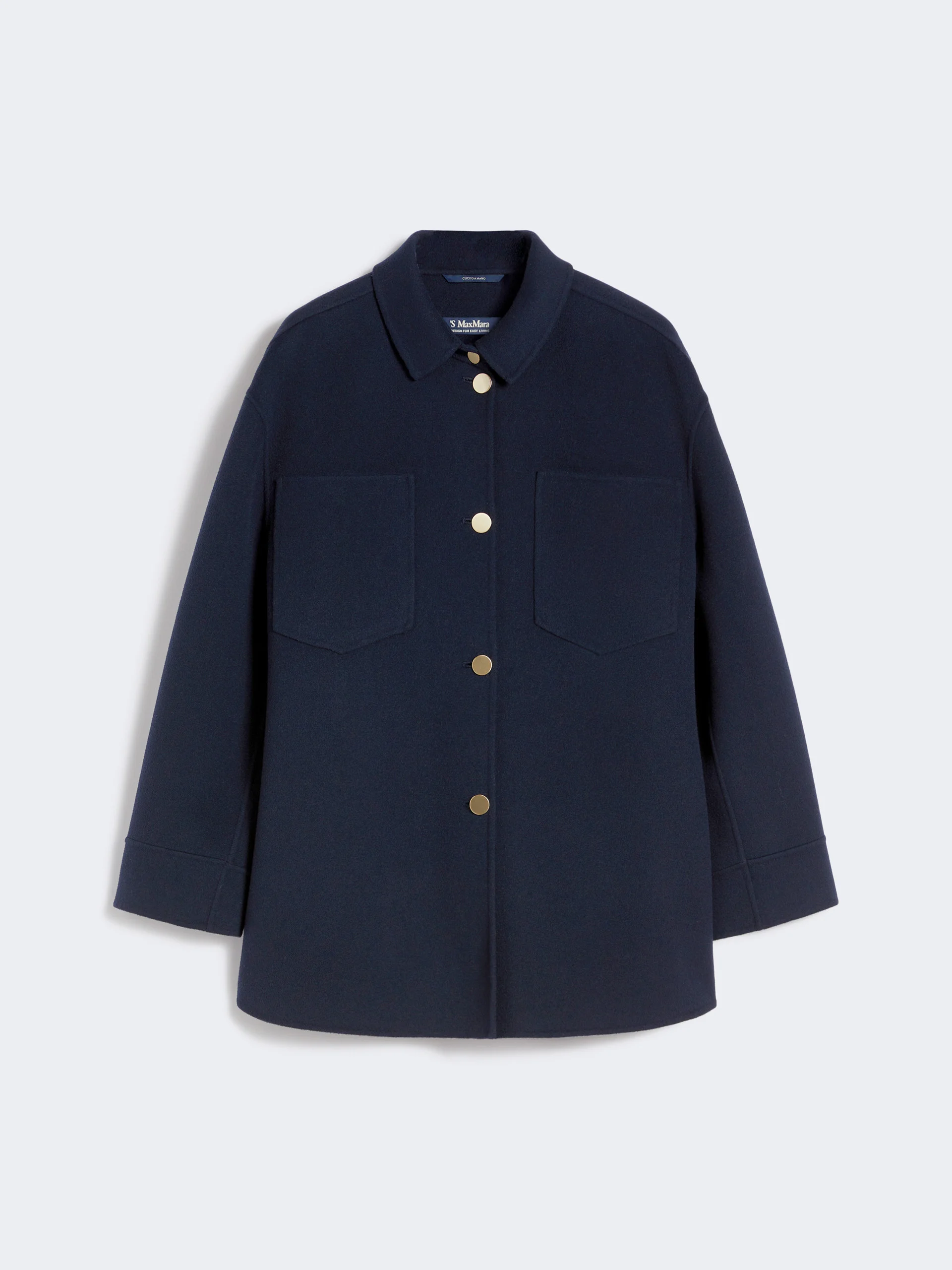 DETAILS Classic long shirt with rounded hem at the back. Shirt made from hand-sewn, pure wool double drap Regular fit Pointed collar and long sleeves with dropped shoulders Front fastening with gold-coloured metal buttons Patch pockets on the chest Back yoke seam COMPOSITION AND CARE Fabric 100% virgin wool; - except joining thread. Do not wash; do not bleach; do not tumble dry; cool iron; professionally dry clean perchloroethylene - mild process; do not wet clean.; wash the garment while it is fastened.; protect buttons before washing.; turn the articles inside out before washing. Distributed by Max Mara S.r.l., registered office in Reggio Emilia (Italy), Via Giulia Maramotti 4, 42124 (IT)