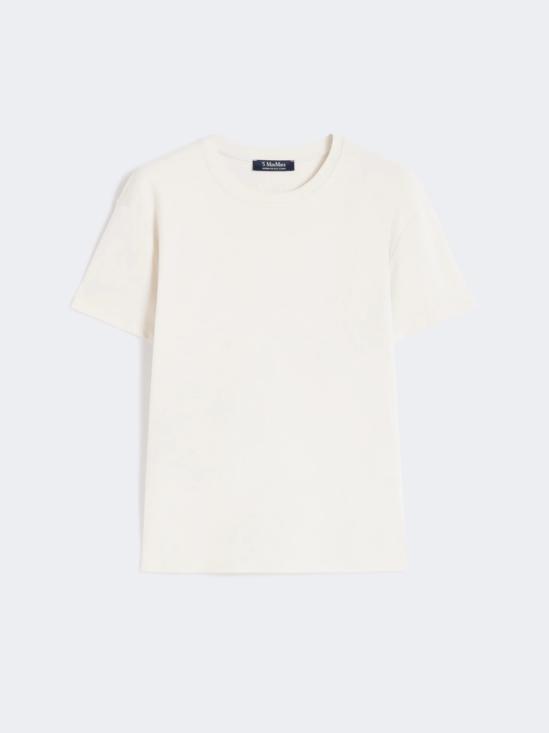 DETAILS Basic T-shirt customised with collection-themed central embroidery on the front. - Pure cotton jersey T-shirt - Straight fit - Crew-neck - Short set-in sleeves - Straight hem COMPOSITION AND CARE Jersey fabric 100% cotton; - exclusive of embroideries. Machine wash cold delicate cycle; do not bleach; do not tumble dry; flat drying in the shade; cool iron; professionally dry clean perchloroethylene - mild process; professional wet cleaning - very mild process.; iron with a cloth between.; iron into original measurements.; using neutral detergent. Distributed by Max Mara S.r.l., registered office in Reggio Emilia (Italy), Via Giulia Maramotti 4, 42124 (IT) Collection: 'S Max Mara Product code: 9971026106012 - SMMBELLA