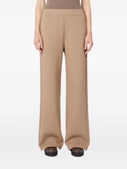 embroidered-pocket wide-leg trousers Highlights - Beige - Wide leg - Elasticated waistband - Embroidered logo pocket - Side pockets Imported Composition Cotton 88%, Polyamide 8%, Elastane 4% Washing instructions Read Manufacturer Guidelines