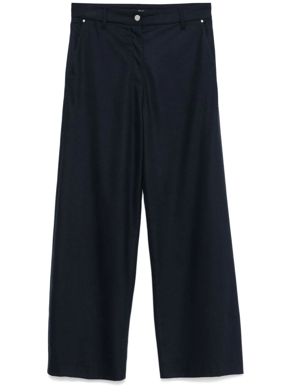 Ermes trousers Highlights - Prussian blue - Virgin wool blend - Interlock twill weave - Front button and zip fastening - Mid-rise - Belt loops - Two side slash pockets - Two rear patch pockets - Straight leg Made in Italy Composition Virgin Wool 98%, Elastane 2% Washing instructions Dry Clean Only