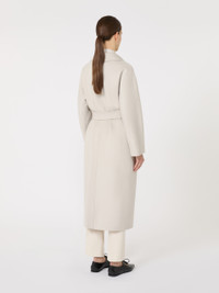 DETAILS Straight-fit midi coat featuring a slightly flared cut at the hem. Coat in hand-sewn double-faced pure wool broadcloth Small lapel collar Long kimono sleeves Matching belt-adorned wraparound fastening In-seam side pockets Unlined model COMPOSITION AND CARE Fabric 100% virgin wool; - except joining thread. Do not wash; do not bleach; do not tumble dry; cool iron; professionally dry clean perchloroethylene - mild process; do not wet clean. Distributed by Max Mara S.r.l., registered office in Reggio Emilia (Italy), Via Giulia Maramotti 4, 42124 (IT)