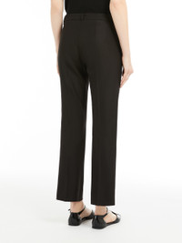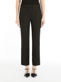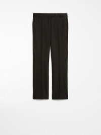 DETAILS Trousers in double-faced stretch cotton and viscose fabric featuring a slim fit that flares slightly at the hem, in addition to pressed pleat detail on the leg and belt loops. High-cut waistband and a fly-covered zip and hook-and-bar fastening. COMPOSITION AND CARE 47% viscose, 45% cotton, 8% elastane. Do not wash; do not bleach; do not tumble dry; cool iron; professionally dry clean perchloroethylene - mild process; do not wet clean.; wash the garment while it is fastened.; do not iron the buttons.; protect buttons before washing.; contains non-textile parts of animal origin. Distributed by Max Mara S.r.l., registered office in Reggio Emilia (Italy), Via Giulia Maramotti 4, 42124 (IT)