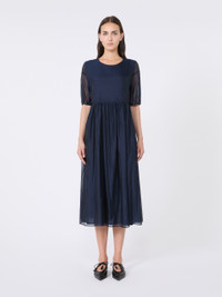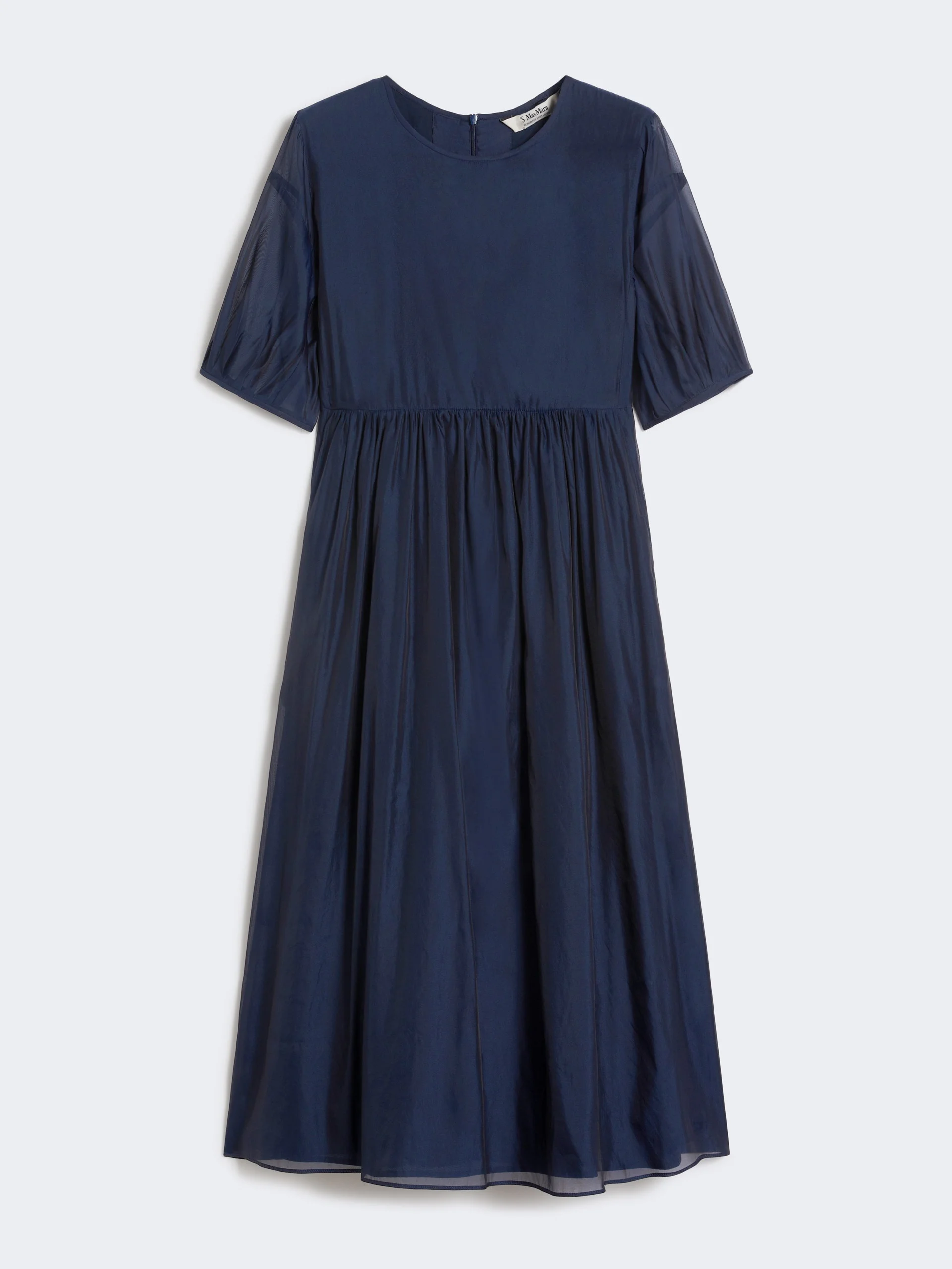 DETAILS Midi dress with a waist seam and gathered motif that adds volume. Lightweight silk-blend organza dress Flared Crew neck Short balloon sleeves Back concealed zip fastening Side inset pockets Lined bodice and skirt COMPOSITION AND CARE Fabric 54% silk, 46% polyester; lining 100% cotton. Do not wash; do not bleach; do not tumble dry; cool iron; professionally dry clean perchloroethylene - mild process; do not wet clean. Distributed by Max Mara S.r.l., registered office in Reggio Emilia (Italy), Via Giulia Maramotti 4, 42124 (IT)