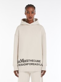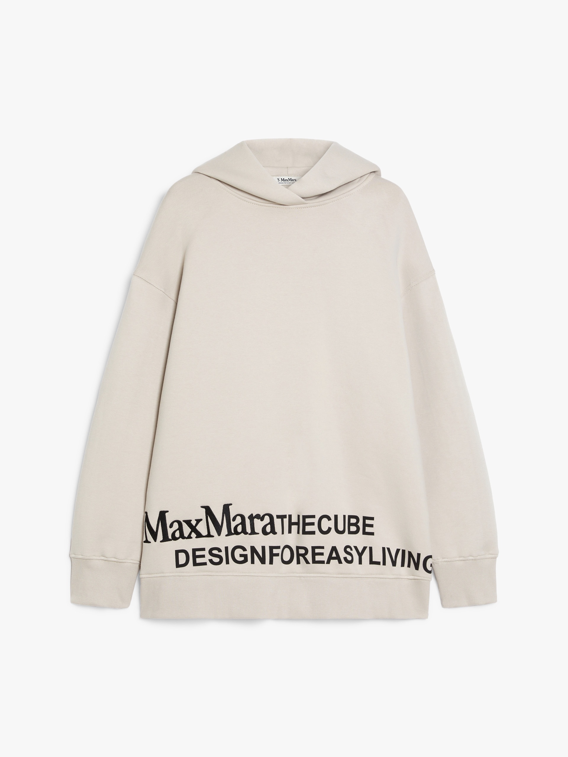 DETAILS Relaxed-fit hoodie in soft cotton jersey fabric featuring drop-shoulder long sleeves. Customised with Max Mara logo detail on the front and embellished with a rib-knit hem and cuffs. COMPOSITION AND CARE Jersey fabric 88% cotton, 8% polyamide, 4% elastane; - exclusive of embroideries. Machine wash cold delicate cycle; do not bleach; do not tumble dry; flat drying in the shade; cool iron; do not dry clean; professional wet cleaning - very mild process.; iron with a cloth between.; using neutral detergent.; turn the articles inside out before washing.; to be ironed on reverse. Distributed by Max Mara S.r.l., registered office in Reggio Emilia (Italy), Via Giulia Maramotti 4, 42124 (IT)
