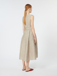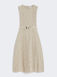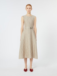 DETAILS Sleeveless midi dress with waist seam and flared skirt with pleated pattern. - Cotton and silk blend jacquard-design dress - Crew neck - Back concealed zip fastening - Side inset pockets - Adjustable belt with snap buttons - Removable jewel appliques on the belt - Unlined COMPOSITION AND CARE 85% cotton, 9% silk, 6% polyamide. Do not wash; do not bleach; do not tumble dry; cool iron; professionally dry clean perchloroethylene - mild process; do not wet clean.; remove the decorations before washing. Distributed by Max Mara S.r.l., registered office in Reggio Emilia (Italy), Via Giulia Maramotti 4, 42124 (IT)