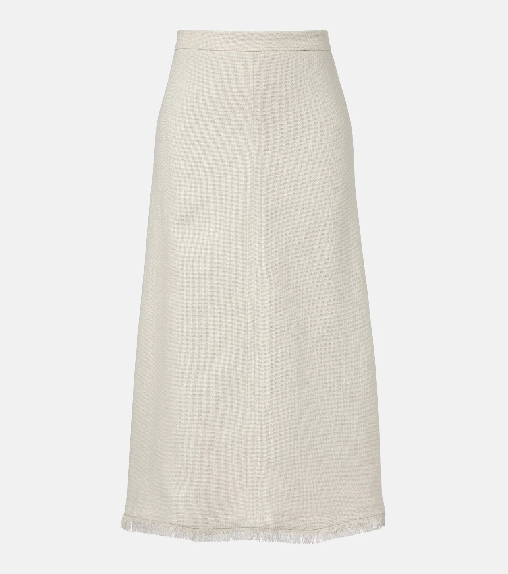 'S Max Mara conveys contemporary elegance through streamlined silhouettes and premium fabrics. The Fiocchi midi skirt features a woven linen and cotton construction and is finished with a fringed hemline Product Details - Material: 86% linen, 13% cotton, 1% elastane - Care instructions: hand wash - Made in Romania - Color: beige - Designer color name: Corda Chiaro - Lining: 92% cotton, 8% polyamide - Closure: concealed zipped back - Item number: P01159670 Size & Fit - True to size - Non-stretchy fabric - High-waisted - The model seen in the picture is 178cm-5'10" and wearing a size DE 34